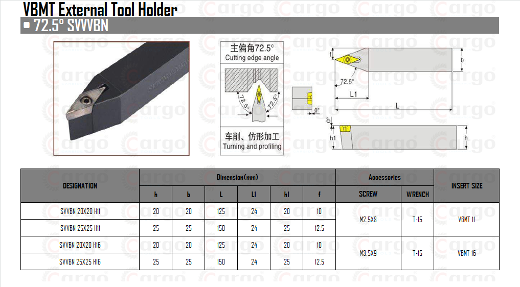 | Product Name | Cargo SVVBN 72.5° Turning Tool Holder |